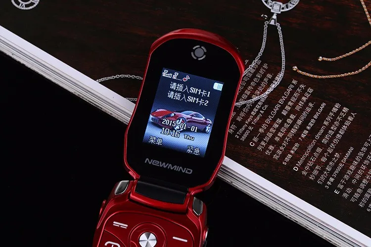 Flip Car Shaped Mini Mobile Phone NEWMIND F15 Dual SIM Card FM Radio Bluetooth LED 1500mAh 1.77Inch Feature Cell Phone