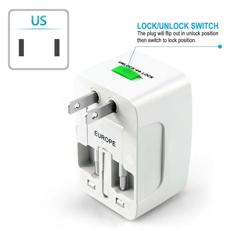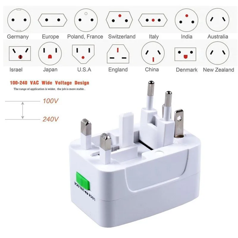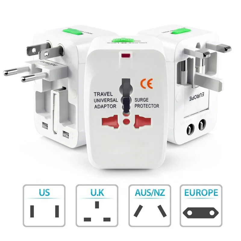 Universal International Travel Adapter All in One AC Power Charger Adaptor with US EU UK AU Converter Plug Surge Protection