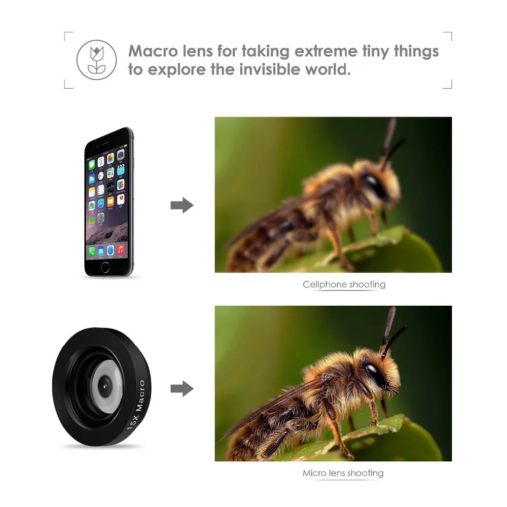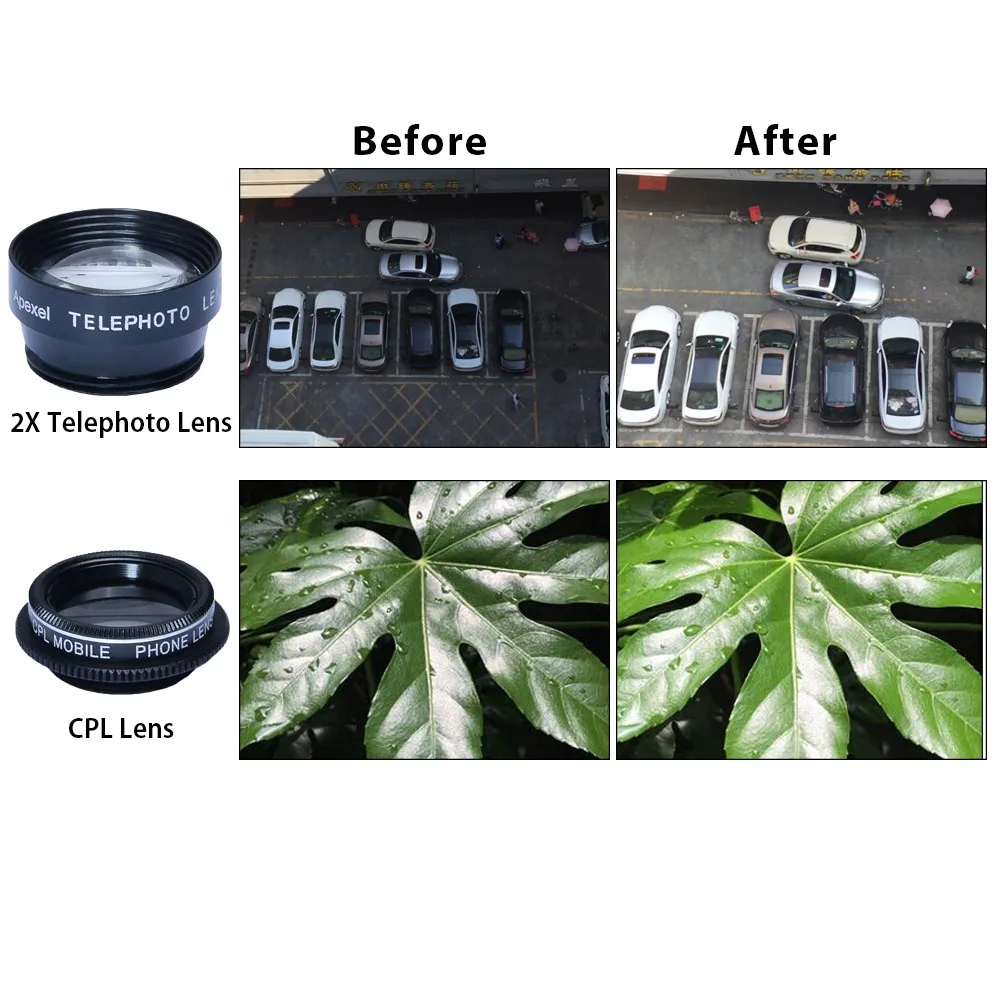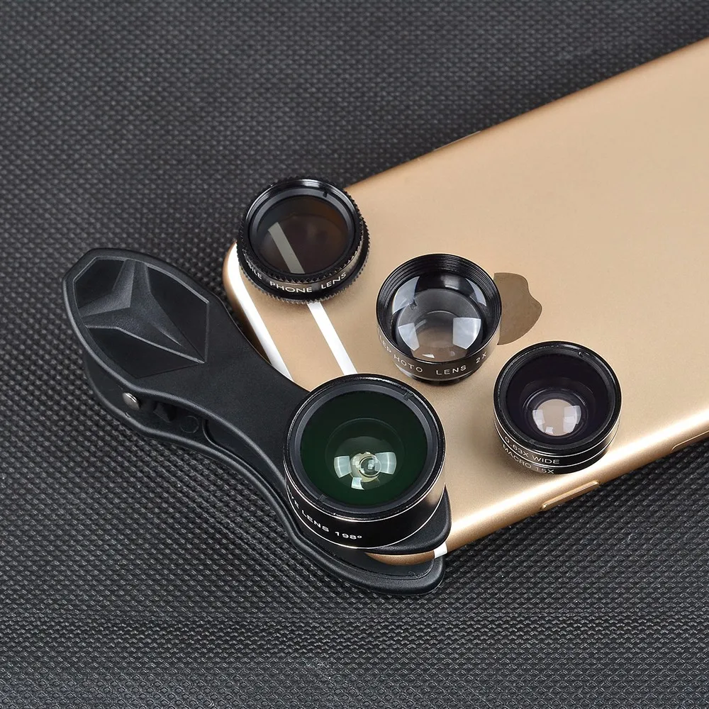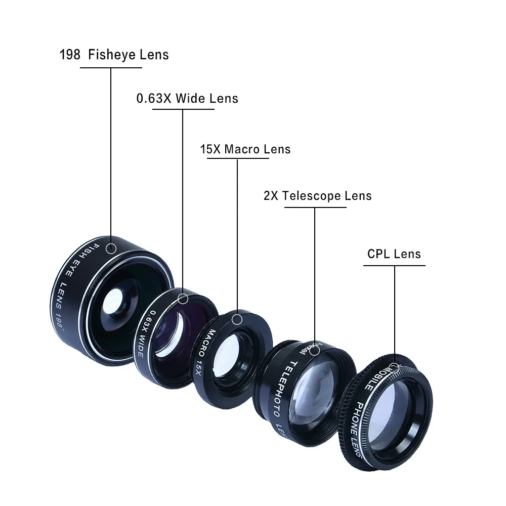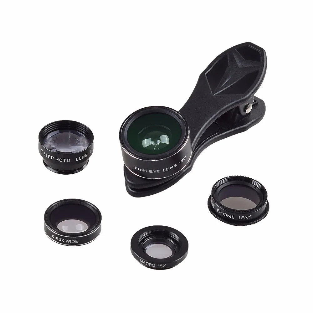 Universal 5 in 1 Camera Lens Kit Fish Eye Lens + 2 in 1 Macro Lens and amp; Wide Angle Lens + CPL Filter and 2X telephoto Lens kit DG5