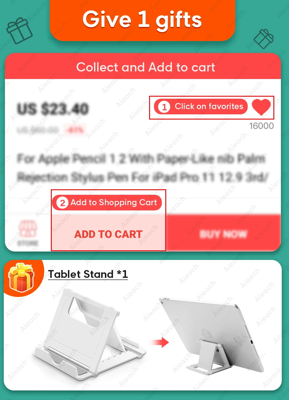 When purchasing, after adding the product to the shopping cart, we will give you a gift: Tablet Stand *1