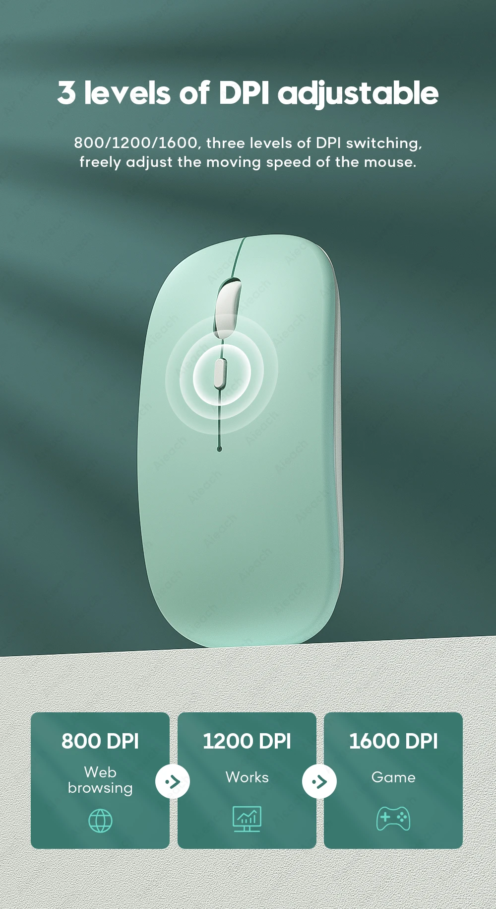 800/1200/1600, three levels of DPI switching, freely adjust the moving speed of the mouse.