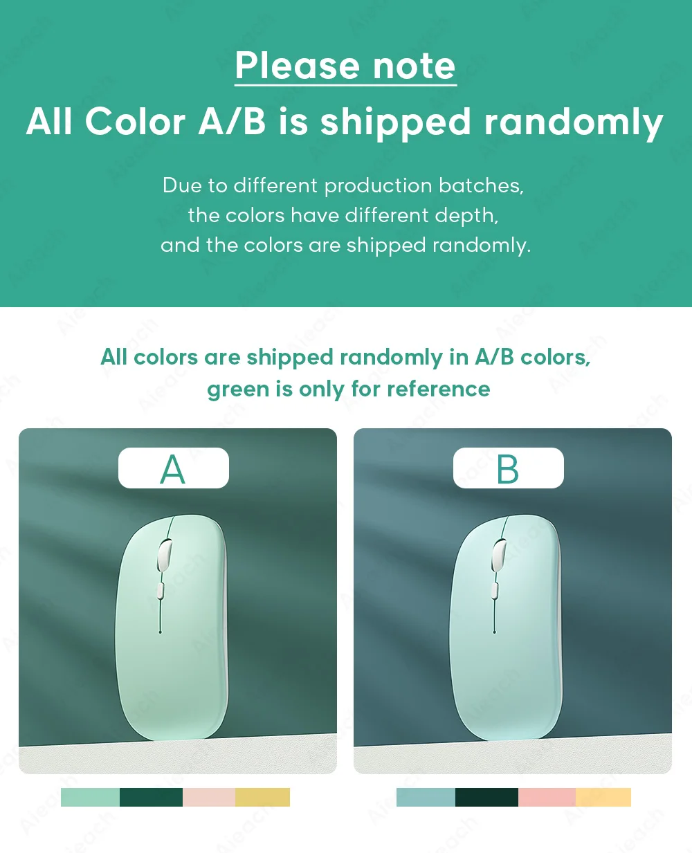 Due to different production batches, the all colors have different shades, and the colors are shipped randomly. All colors are shipped randomly in A/B colors,green is only for reference.