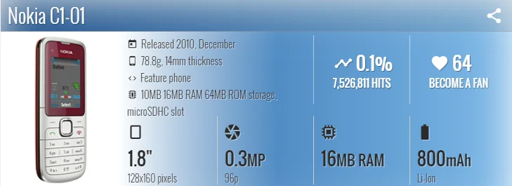 Size1.8 inches, 10.2 cm2 (~21.0% screen-to-body ratio)